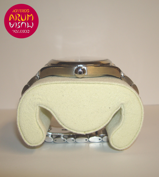 Description :steel, black dial, smooth bezel, sapphire crystal, quartz movement, center seconds, luminescent handles with indicators, date at three, screwed crown, diameter 39 mm, waterproof 150 meters, steel strap, hidden folding clasp, year 2007.