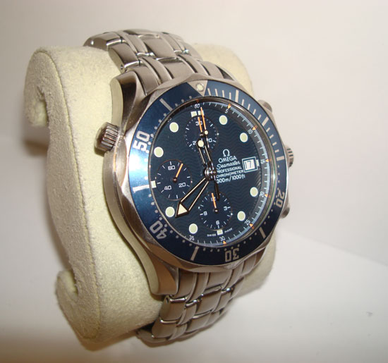 Description :steel, sapphire crystal, blue dial, automatic movement, chronograph, 3 indicators on the dial, seconds, minutes, hours, date at three, handles and dial with luminescent indicators, screw crown and two buttons, waterproof 300 meters, diameter 41 mm, steel strap, steel folding clasp.