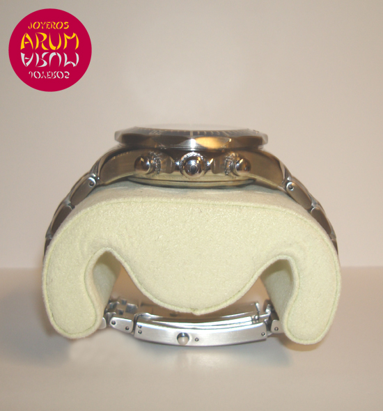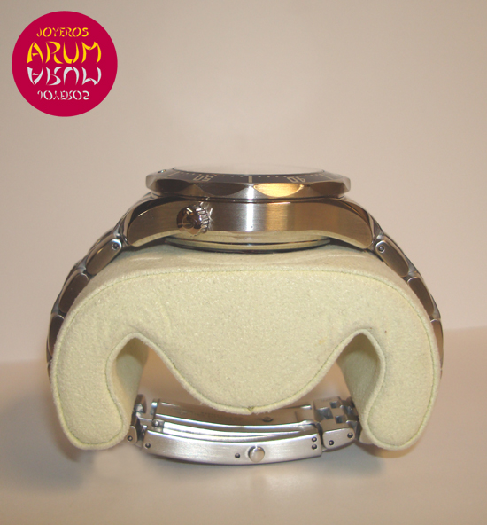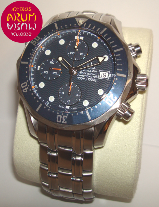 Description :steel, blue dial, sapphire crystal, rotating bezel, automatic movement, chronograph, three indicators on the dial, seconds, minutes, hours, date at three, luminescence dial and handles, screw crown and pushers, diameter 41 mm, 300 meters waterproof, steel strap, steel folding clasp.