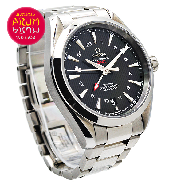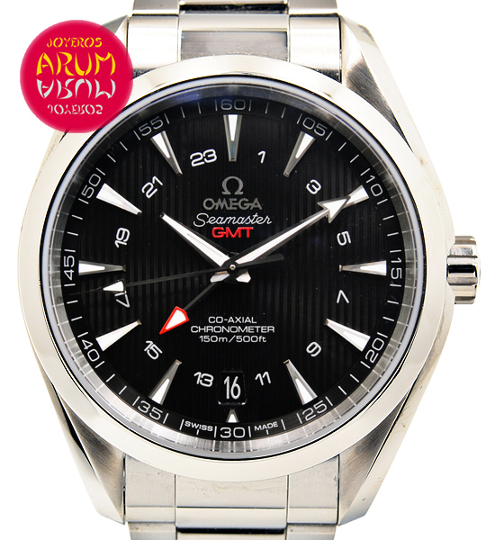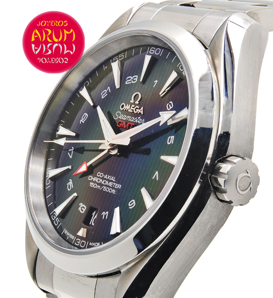 Other specifications :GMT (second time zone), date at six, co axial escapement, central seconds, luminiscence, transparent caseback. Year 2013.
