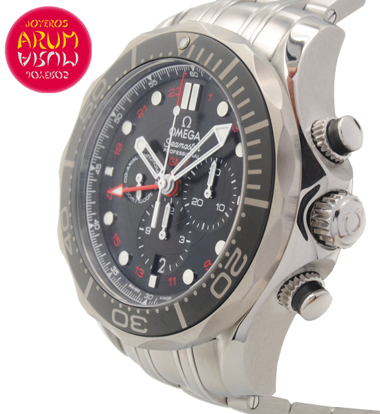 Other specifications :calibre 3603, power reserve 52 hours, chronograph, GMT (second time zone), date at six, small seconds at nine, rotating bezel, helium valve, luminous marks, auxiliary crown at ten. Year 2014.