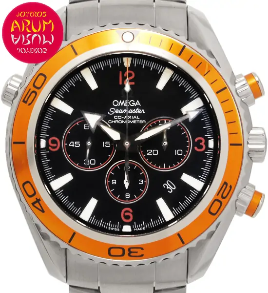 Other specifications :chronograph, date between four and five, small seconds at nine, luminous marks, rotating bezel, screw crowns.