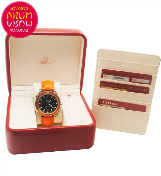 Other specifications :co-axial escapement, date at three, central seconds, luminous marks, helium valve, orange rotating bezel, auxiliary crown at ten. Year 2006.