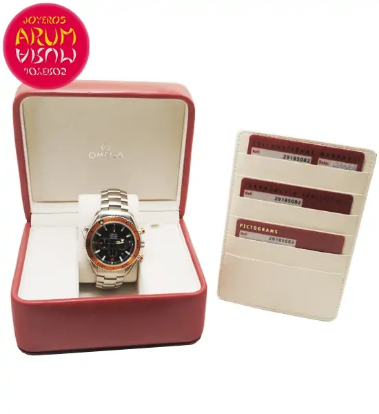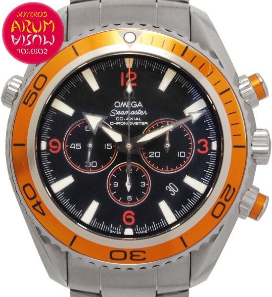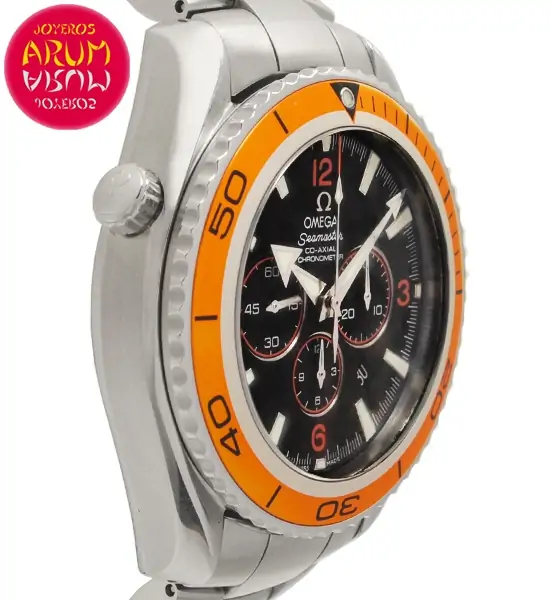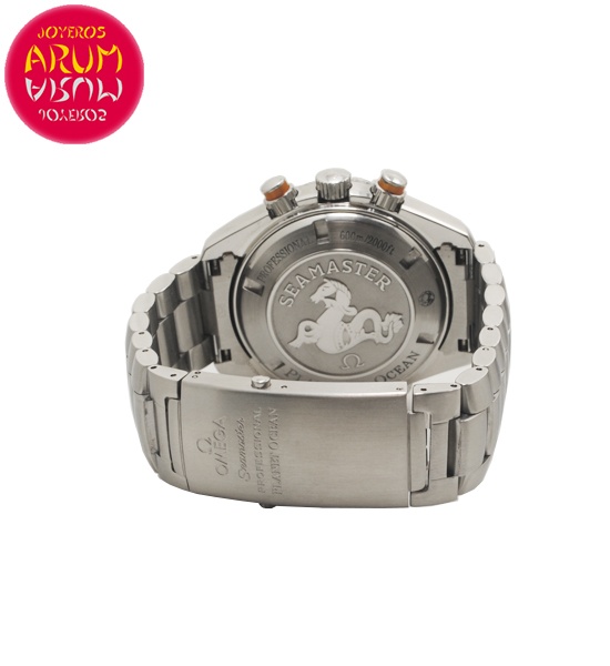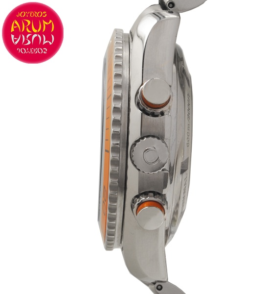 Otras especificaciones :cronógrafo, fecha entre las cuatro y las cinco, segundero pequeño a las nueve, marcas luminiscentes, bisel giratorio naranja, válvula de helio, coronas y pulsadores a rosca, corona auxiliar a las diez. Año 2008.