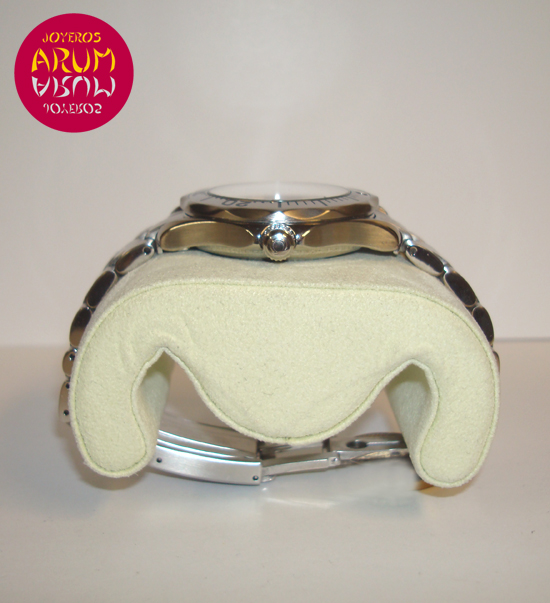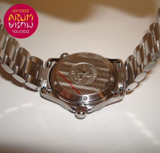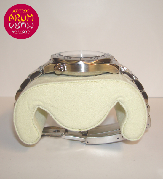 Description :steel, blue dial, rotating bezel, sapphire crystal, quartz movement, central seconds, handles and luminescent dial, date at three, waterproof 300 mts, helium valve, auxiliary left crown, diameter 36 mm, steel strap, steel folding clasp, year 2008.