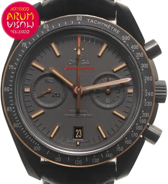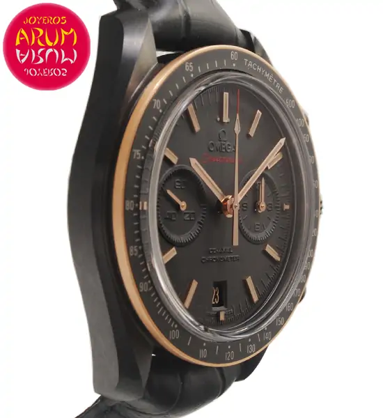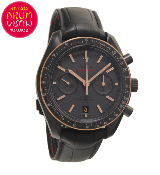 Other specifications :calibre Omega 9300, escape co-axial, power reserve 60 hours, chronograph, tachymetre, date, small seconds, luminous marks, transparent caseback. Year 2016.