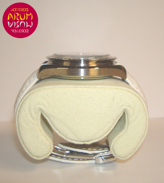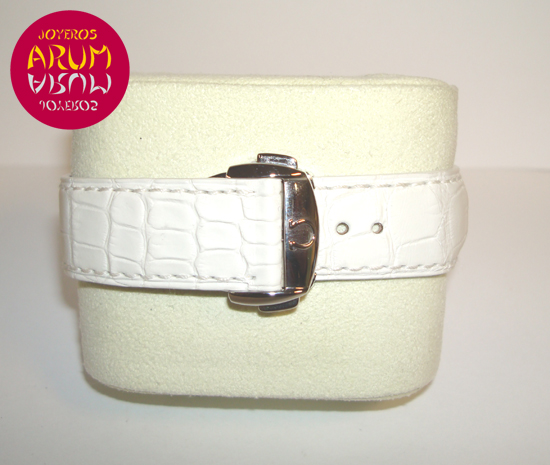 Description :steel, mother of pearl dial, bezel with diamonds, sapphire crystal, automatic movement, chronograph, three indicators on the dial, seconds, minutes and hours, handles and luminescent numbers, waterproof 100 meters, diameter 38 mm, white leather strap, folding clasp steel.