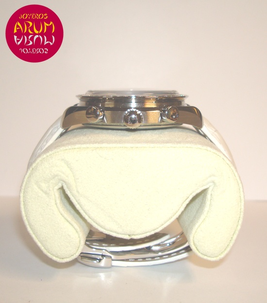 Description :steel, mother of pearl dial, bezel with diamonds, sapphire crystal, automatic movement, chronograph, three indicators on the dial, seconds, minutes and hours, handles and luminescent numbers, waterproof 100 meters, diameter 38 mm, white leather strap, folding clasp steel, year 2011.