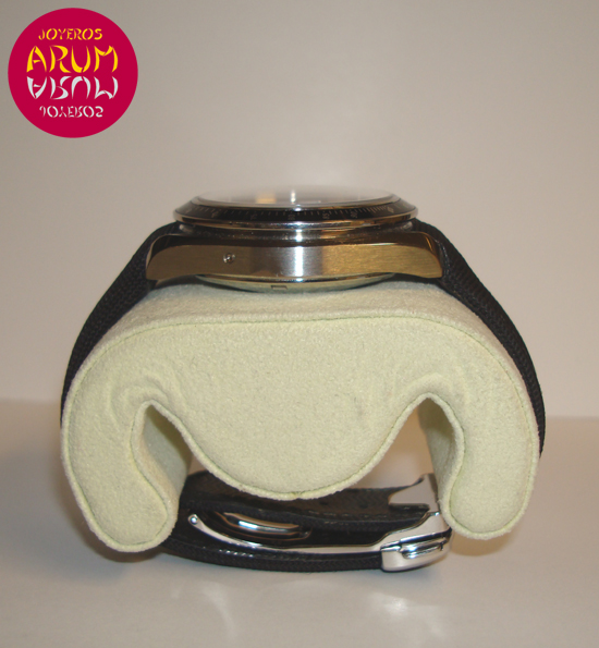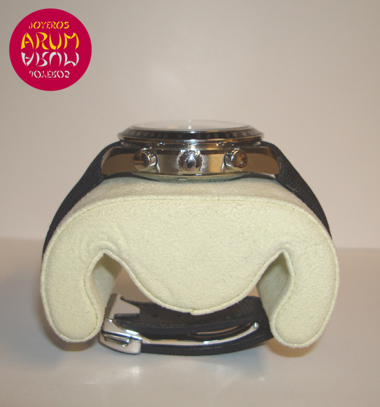 Description :steel, white dial, fixed bezel with tachymeter scale, sapphire crystal, automatic movement, power reserve 44 hours, chronograph, three indicators on the dial, seconds, minutes, hours, date between four and five, screw crown two buttons, diameter 38 mm, waterproof 100 meters, textile strap, steel folding clasp.