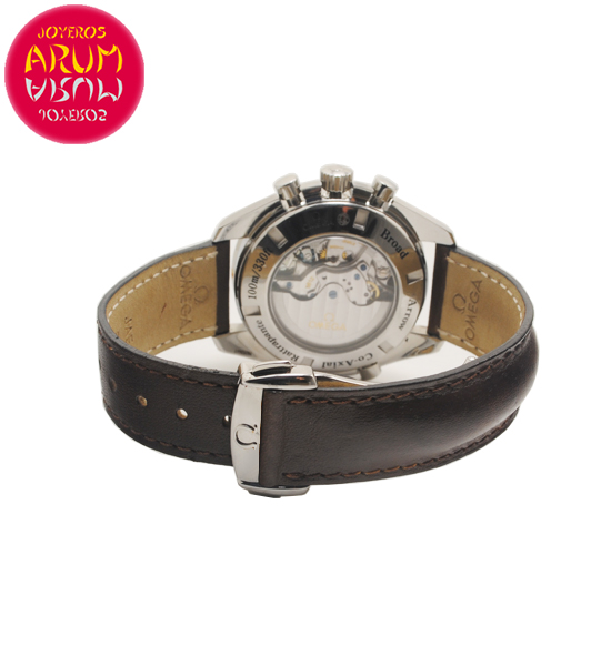 Other specifications :calibre Omega 3612, power reserve 52 hours, rattrapante chronograph, date at six, small seconds at nine, luminous marks, transparent caseback.