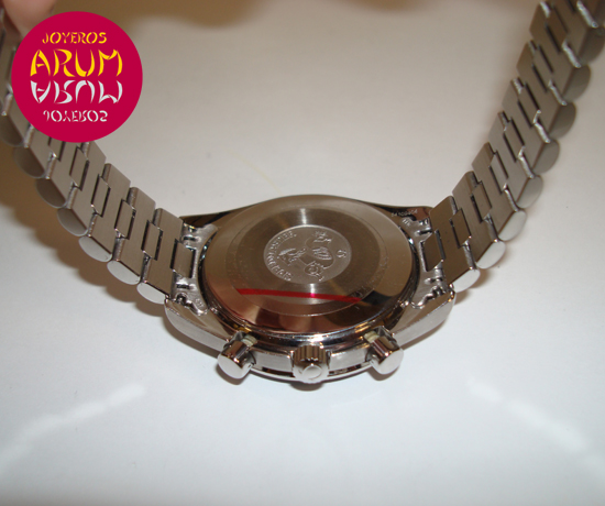 Description :steel, black dial, plexi glass, automatic movement, fixed bezel with tachymeter scale, chronograph, three indicators on the dial, seconds, minutes and hours, handles and luminescent dial, diameter 37 mm, steel strap, folding clasp, year 1994.