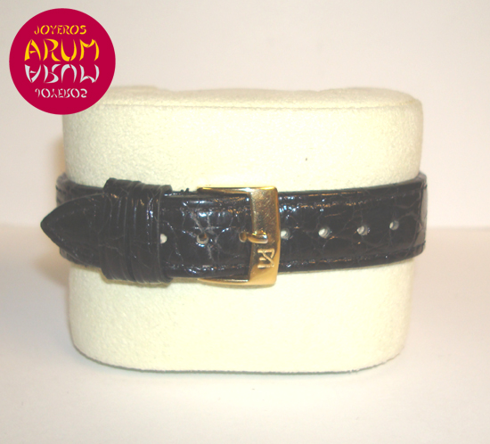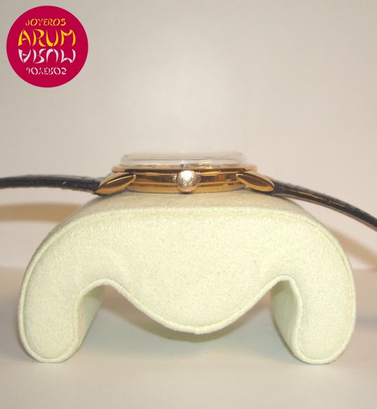 Description :pink gold, beige dial, plastic glass, hand manual movement, small seconds at six, crown clockwise, diameter 36 mm, black leather strap, buckle closure.