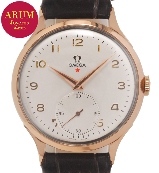 Other specifications :calibre Omega 265, 18K gold, red star Teddington, small seconds, Omega buckle.
