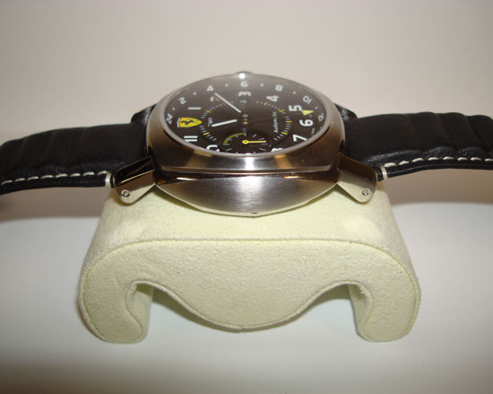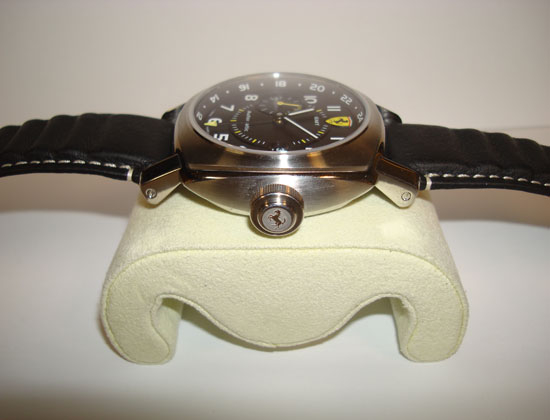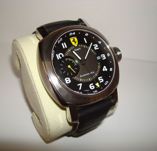Description :steel, black dial, sapphire crystal, automatic movement, GMT function (second time zone), date at three, luminescent handles, screw crown, waterproof 100 meters, diameter 45 mm, black leather strap, steel folding clasp.
