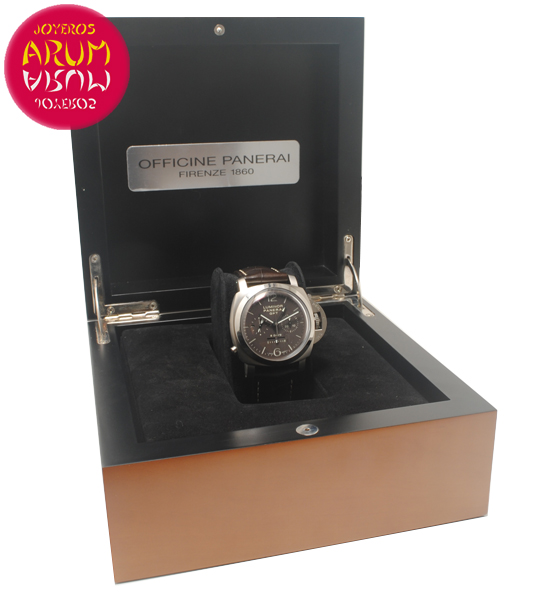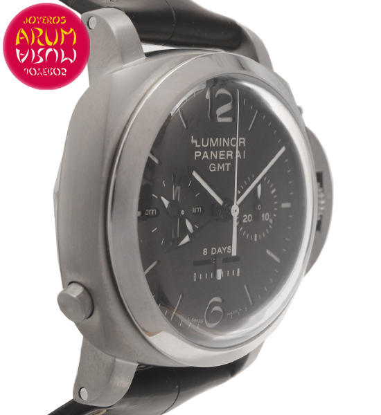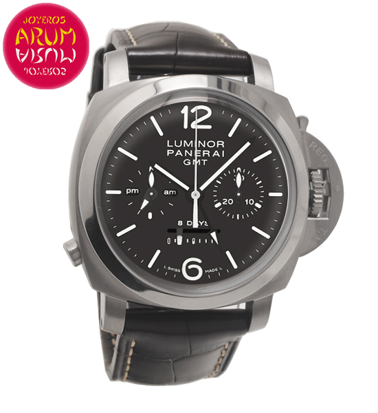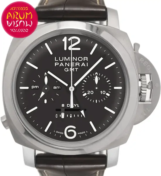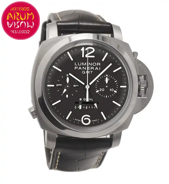 Other specifications :calibre P2004, power reserve 8 days, power reserve indicator, monopulsante chronograph, GMT, am/pm, small seconds, luminous marks, lock system crown.