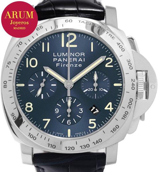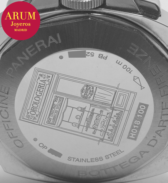 Other specifications :special edition official Panerai Boutique in Florance, limited 100 pieces (H18/100), calibre OP XII, power reserve 46 hours, chronograph, tachymetre, date, small seconds, luminous superluminova marks, lock system crown by Panerai, backcase engraved with Florance Panerai boutique. Year 2009.
