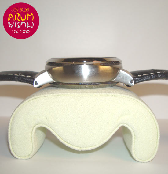 Description :steel, black dial, smooth bezel, sapphire crystal, automatic movement, caliber P9002, power reserve of 72 hours, handles, indicators and luminescent numbers, power reserve indicator between four and six, small seconds at nine, crown with protective and safety lever, transparent back, diameter 44 mm, water resistant 300 meters, black leather strap, steel buckle closure, includes a second rubber strap, year 2012.