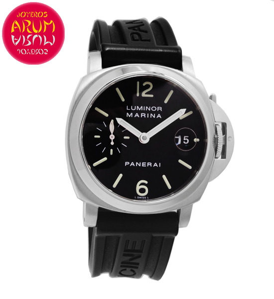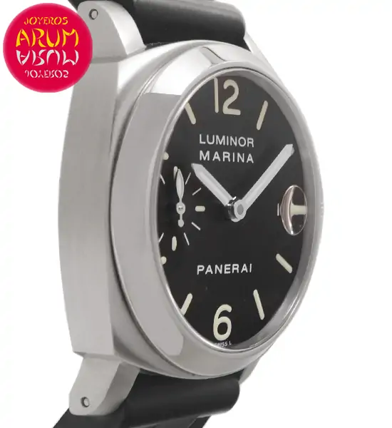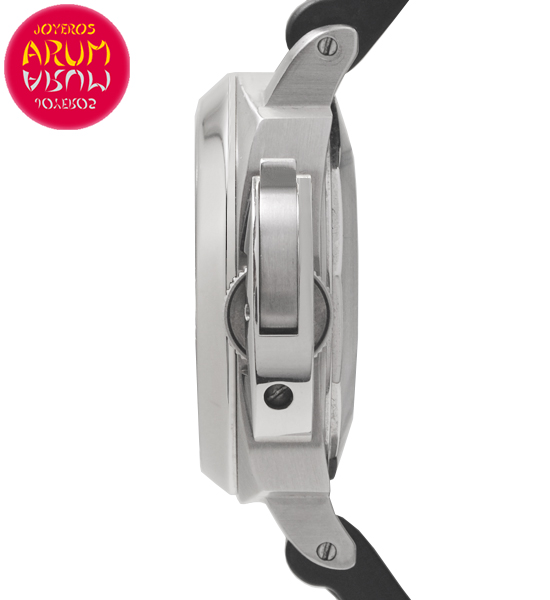Other specifications :calibre OPIII, power reserve 42 hours, date at three, small seconds at nine, luminous marks, lock system crown patented by Panerai. Year 2003.