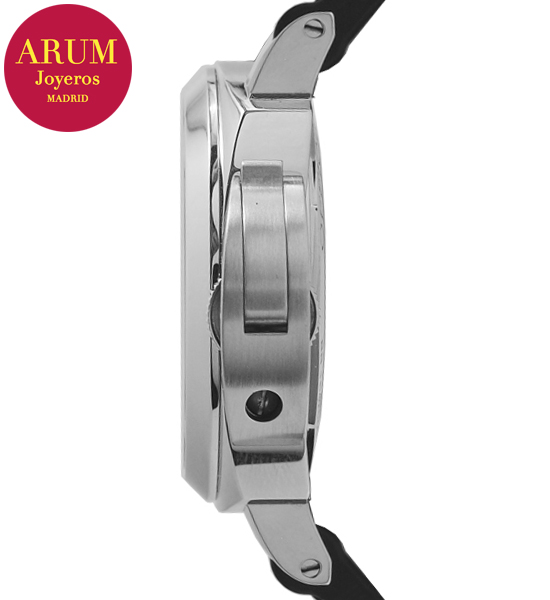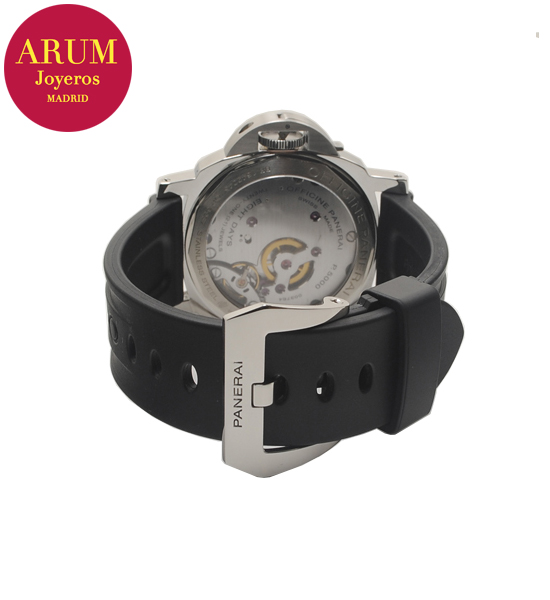 Other specifications :calibre Panerai P.5000, power reserve 8 days, small seconds at nine, luminous marks, lock system crown, transparent caseback. Year 2014.