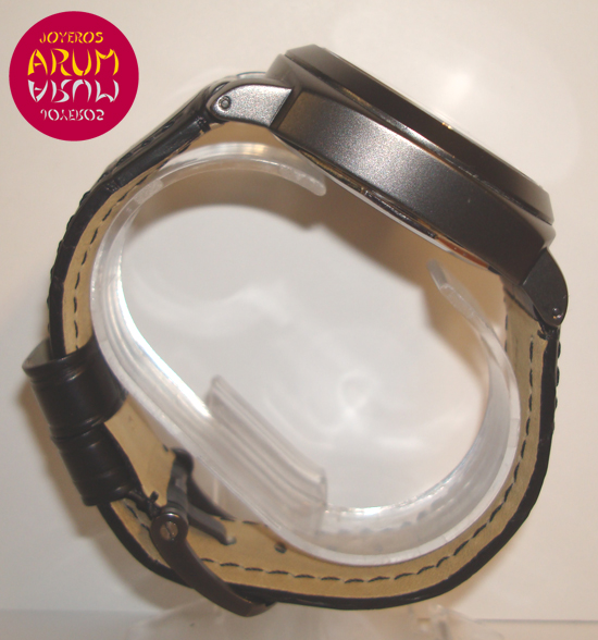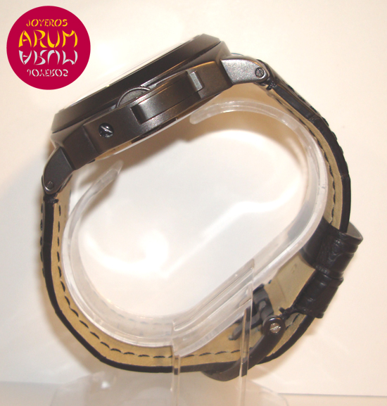 Description :limited edition of 1500 pieces, PVD steel, black dial, smooth bezel, sapphire crystal, hand manual movement, small seconds at nine, handles and dial with luminescent indicators, crown protector and outer safety lever, diameter 44 mm , waterproof 300 meters, black leather strap, includes a second brown leather strap, buckle closure, year 1998.