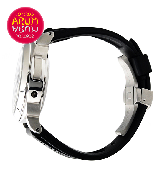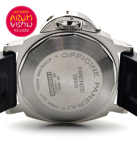 Other specifications :calibre Panerai OPIII Valjoux 7750-P1, smooth bezel, magnified date at three, small seconds at nine, patented lock system crown, luminiscence, includes second leather strap. Year 2006.