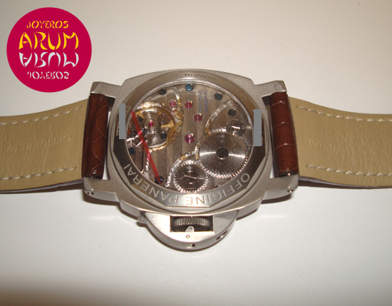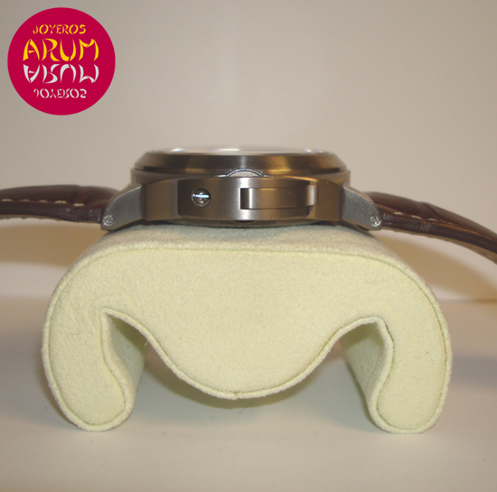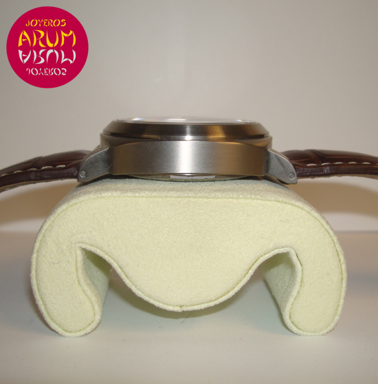 Description :titanium, smooth bezel, black dial, sapphire crystal, hand manual movement, small seconds at nine, handles and luminescent dial, crown with protective, 44 mm diameter, 300 meters waterproof, transparent back, rubber strap, titanium buckle closure, year 2011.