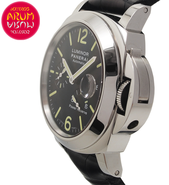 Other specifications :date at three, power reserve indicator, small seconds at nine, luminous marks, smooth bezel, lock system crown patented by Panerai. Year 2013.