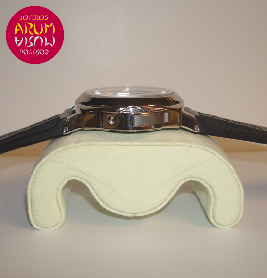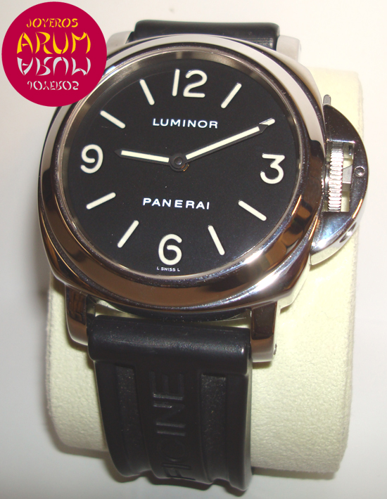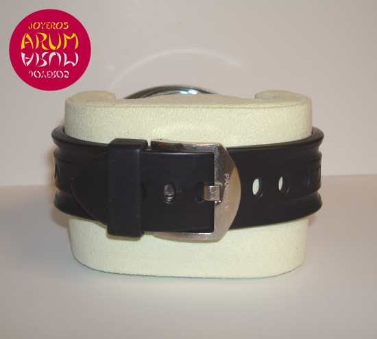 Description :steel, smooth bezel, black dial, sapphire crystal, hand manual movement, handles and luminescent dial, crown with protective, diameter 44 mm, waterproof 300 meters, rubber strap, buckle closure.
