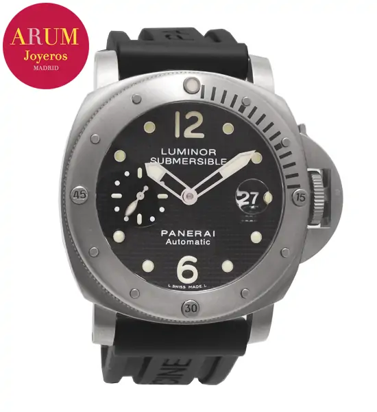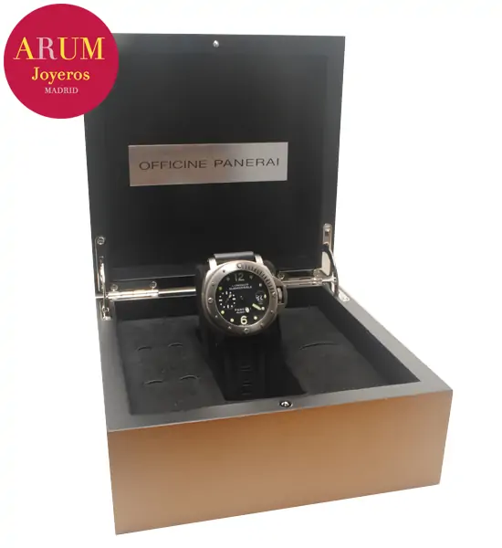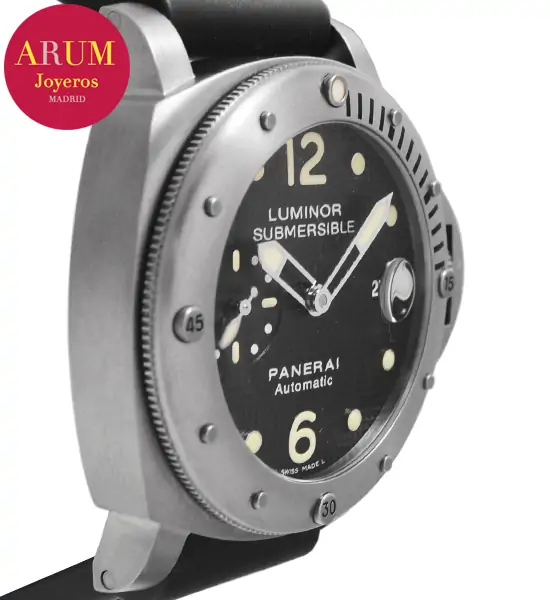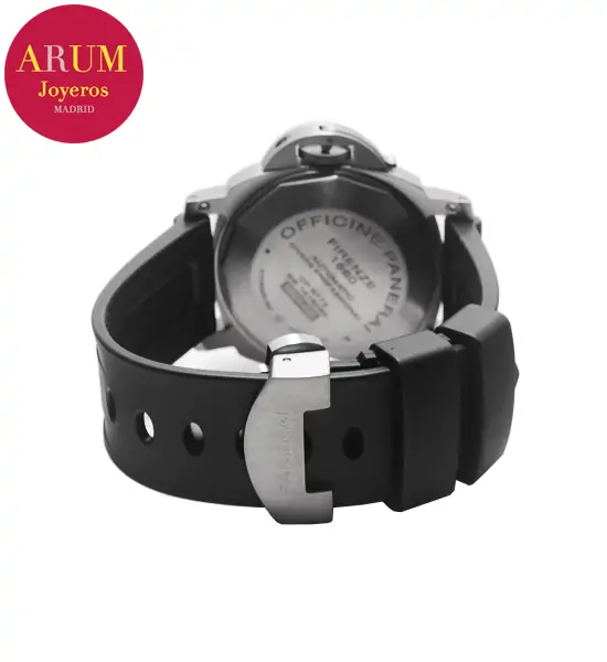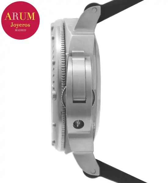 Other specifications :calibre OPIII, power reserve 42 hours, date at three, small seconds at nine, luminous marks, rotating bezel, lock system crown patented by Panerai.