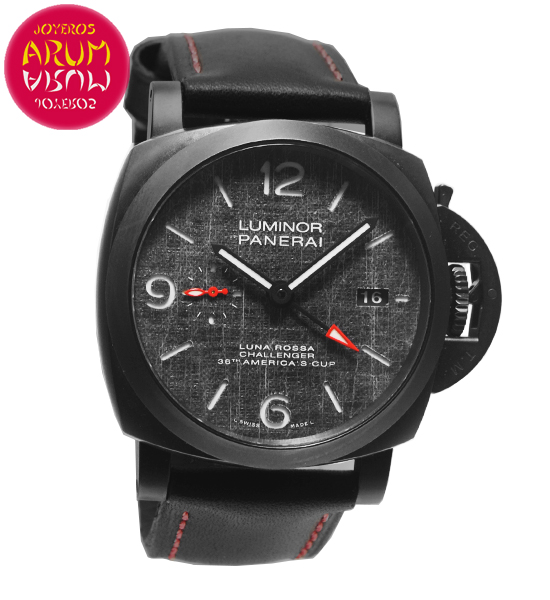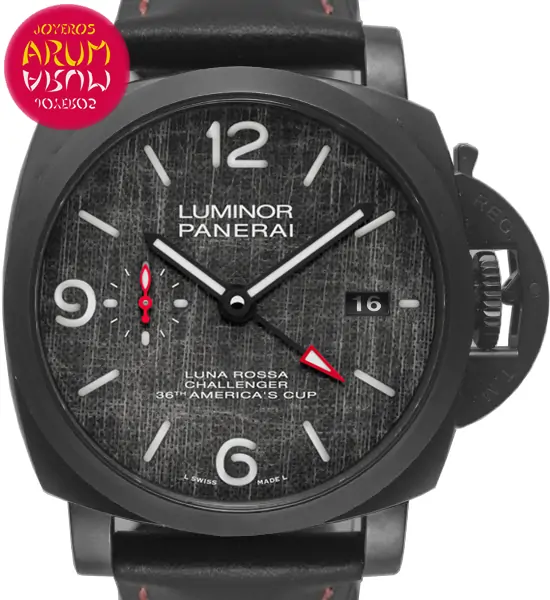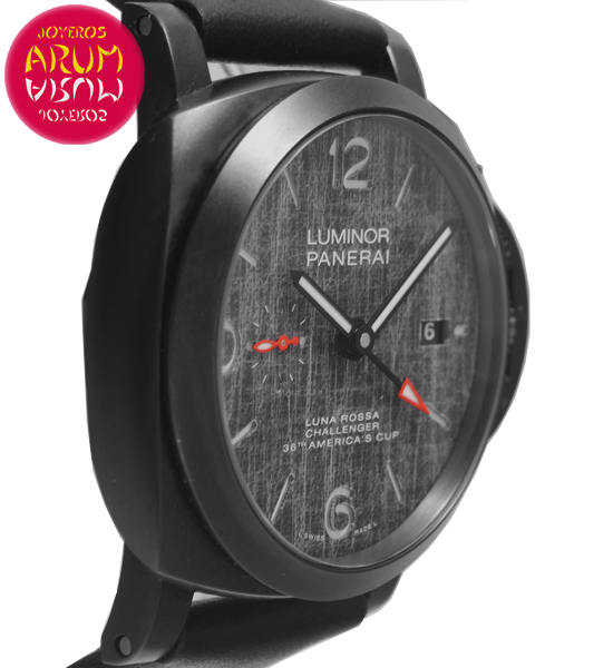 Other specifications :special edition Luna Rossa Challenger 36th Americas Cup, calibre P.9010, power reserve 72 hours, GMT, date, small seconds, luminous marks, lock system crown patented by Panerai. Year 2020.