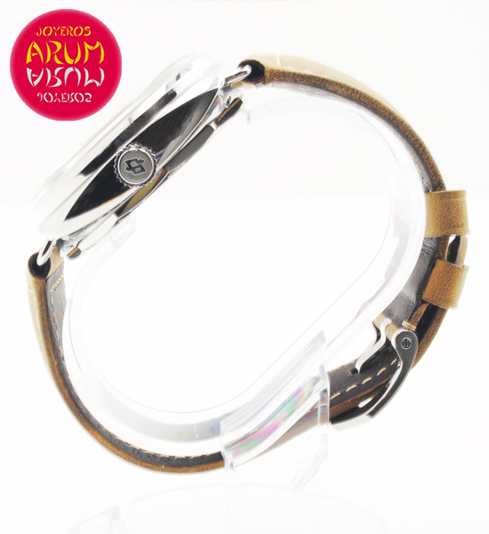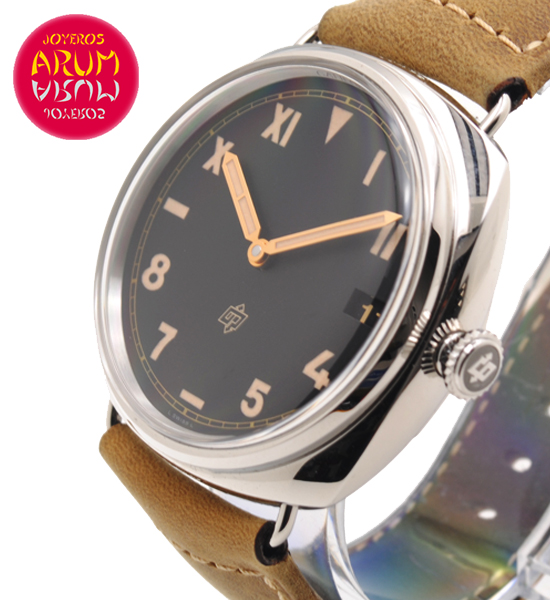 Other specifications :calibre Panerai P3000, power reserve 72 hours, date at three, luminiscence handles and numbers, screw crown, transparent caseback. August/2014.