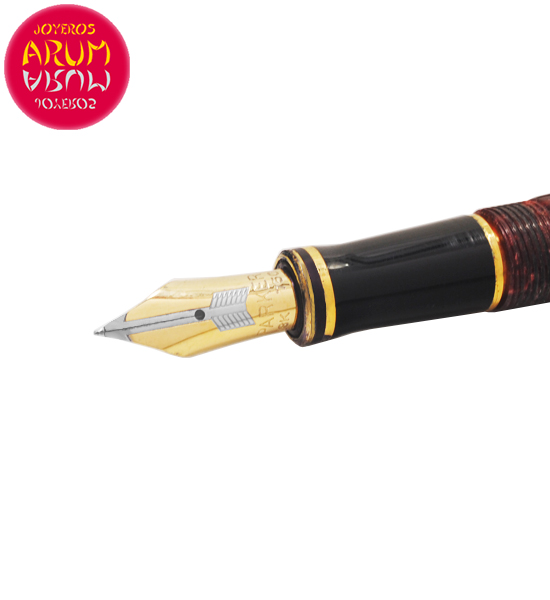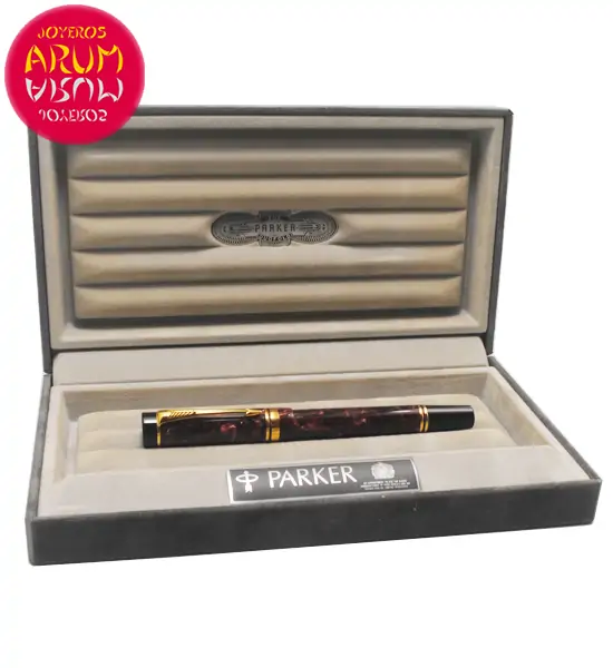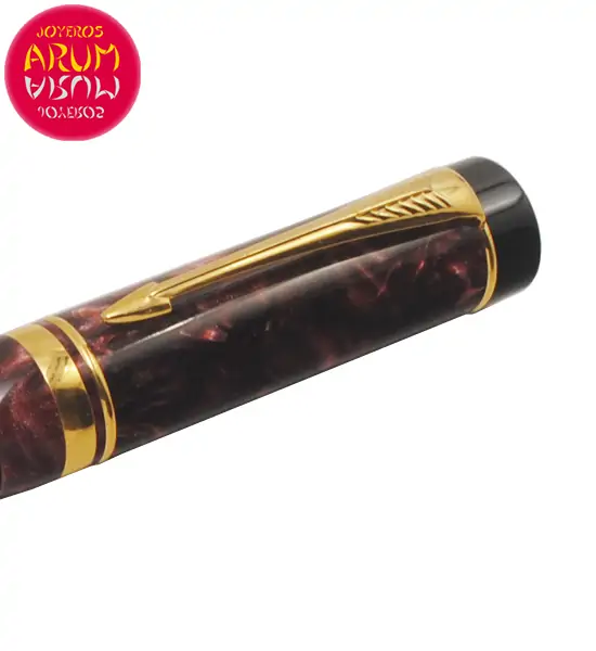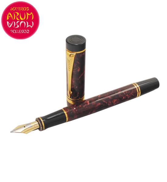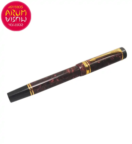 Description: Fountain pen of the prestigious Parker firm belonging to the Duofold collection, created as a tribute to the brand’s classic models. It is made of bordeaux marbled resin, with gold plated details. The nib (F) is in 18K gold. The size is 13,2 cm.