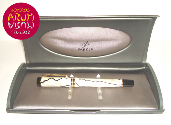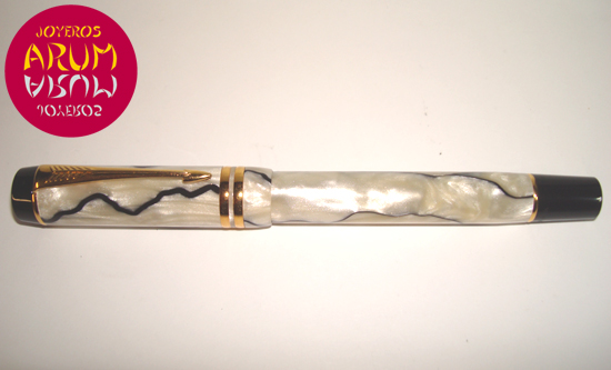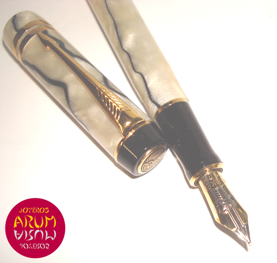 Product: Parker Duofold Fountain PenARUM Reference: RA2246Description: Body and cap in resign. Gilt clip and rings. Nib in gold 18 K.Size: 131 mmWith Parker box.
