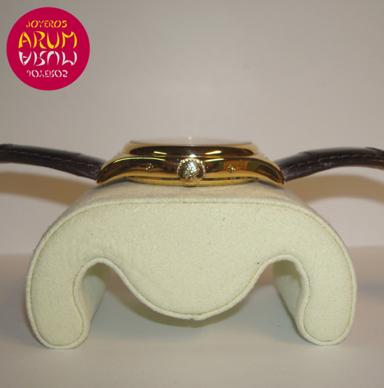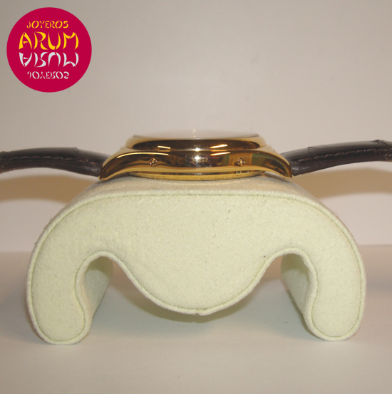 Description :yellow gold, cream dial, sapphire crystal, automatic movement, power reserve 48 hours, caliber 315 S IRM QA LU, annual calendar, day of the week, month indicator, moon phase, power reserve indicator at twelve, date at six, center seconds, luminescent handles, screwed crown, 36 jewels, transparent caseback with sapphire crystal, diameter 39 mm, waterproof 30 meters, dark brown leather strap, gold folding clasp, year 2007.