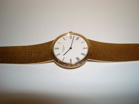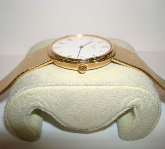 Description :yellow gold case, white dial with roman numerals, sapphire crystal, quartz movement, caliber E23, diameter 33 mm, yellow gold bracelet, adjustable closure in various positions.