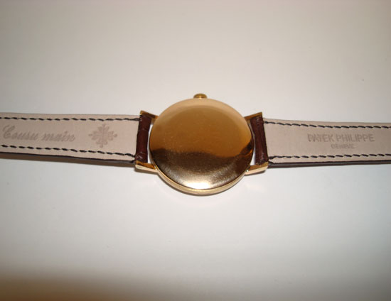Description :pink gold, cream sphere, plastic glass, manual movement, second smaller, diameter 33 mm , Patek Philippe original strap brown leather, buckle closure original Patek Philippe.