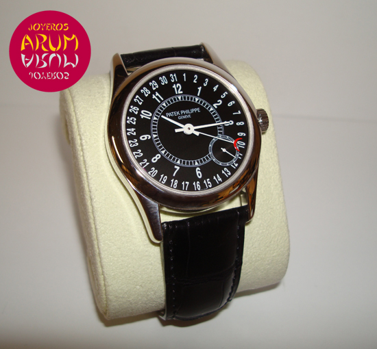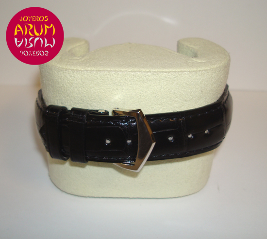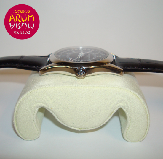 Description :white gold, black dial, sapphire crystal, automatic movement, caliber 240 PS C Aiguille, small seconds at four, auxiliary handle with a red moon indicates the date, power reserve 48 hours, waterproof 25 meters, transparent caseback, black leather strap, white gold folding clasp, year 2006.