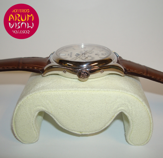 Description :white gold, cream-white dial with arabic numerals, sapphire crystal, automatic movement, caliber 315 S IRM QA LU, power reserve of 48 hours, center seconds, luminescent handles, power reserve indicator at 12, day of the week at nine, months at three, date at six , moon phase, diameter 39 mm, waterproof 30 meters, transparent caseback, brown leather strap, white gold clasp.