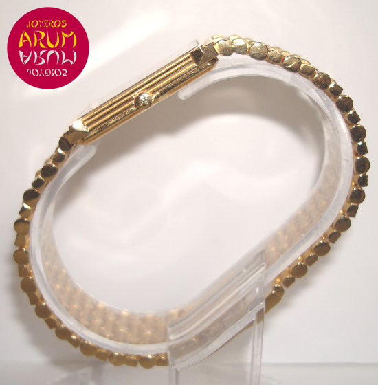 Description :yellow gold, roof greek with to two columns greek bezel, greek motive in the sphere, sapphire crystal, quartz movement, cuff links shaped with greek columns, diameter 25 mm by 30 mm, adjustable clasp closure.