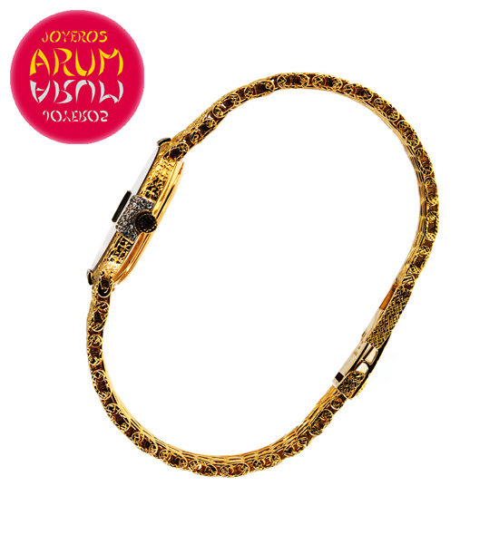 Other specifications :diamonds in the bezel, 18 K gold bracelet.