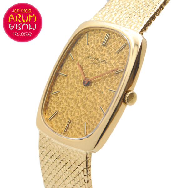 Other specifications :nutshell texture, 18K gold case, bracelet and clasp, smooth bezel.