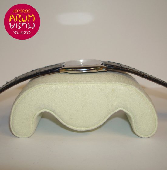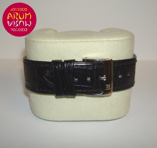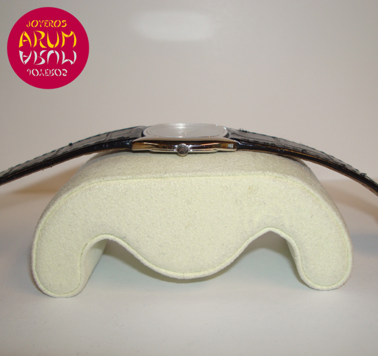 Description :white gold, black dial, sapphire crystal, manual movement, diameter 31 mm, black leather strap, buckle closure, 60´s.