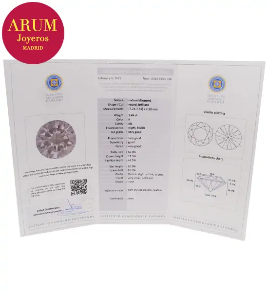 Product: Platinum Ring with Diamond 1,46 cts.Shop Reference: RAJ2266Description: Ring made in platinum with Diamond 1,46 cts (K,SI1)Size:14Condition: Like new, with box.