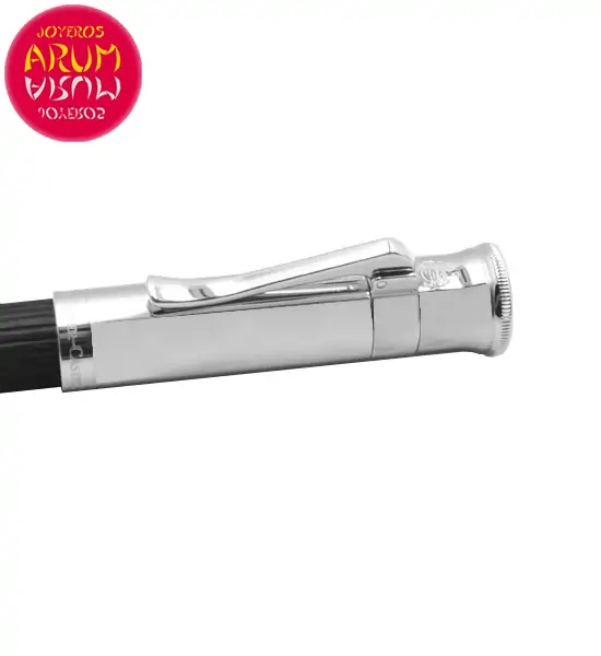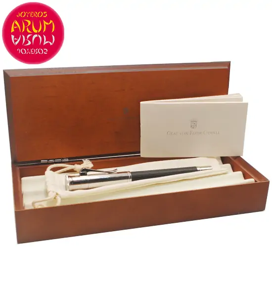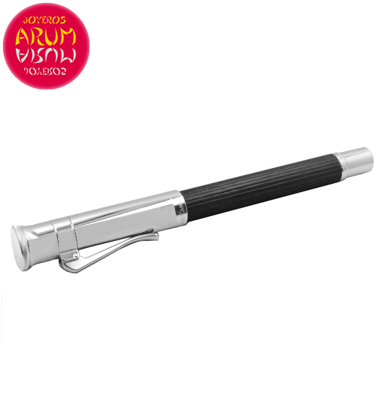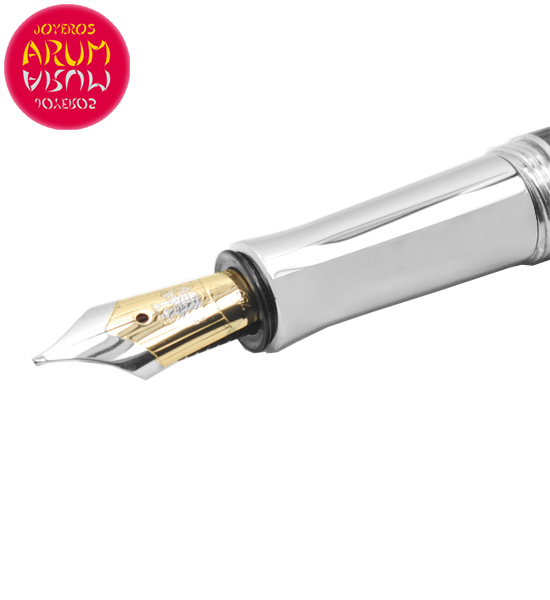 Description: Made in dark wood, cap and details finishes in platinum . 18K gold nib. Elastic clip . Measure is 13.5 cm.