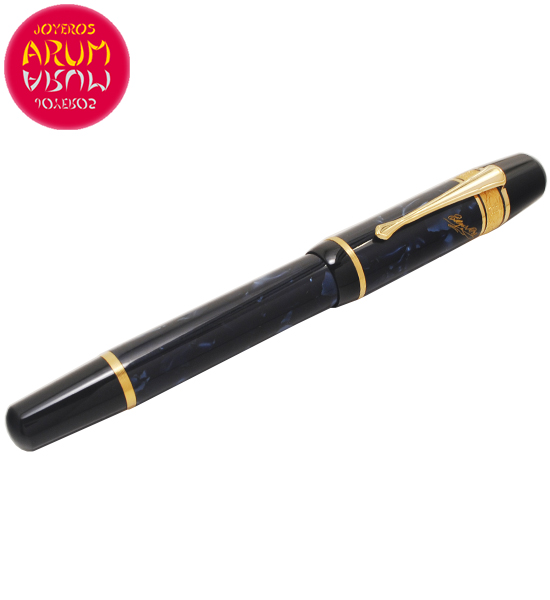 Description: Pen of the prestigious German firm Montblanc, special edition tribute to the writer Edgar Allan Poe. It is a limited edition of 17,000 pens, produced only in 1998. The pen is made of noble resin with blue aquamarines, marble, with gold plated details. In the cap there is the signature of the writer and crowned the emblematic star of Montblanc. The nib is made of 18K gold with a crow engraved representing the most famous work of Poe. The size of the pen is 14.5 cm.
