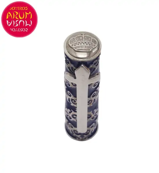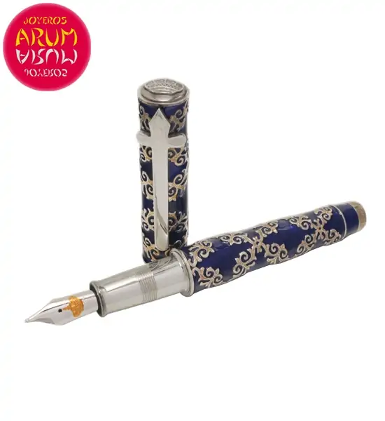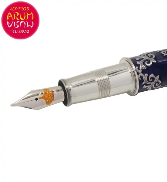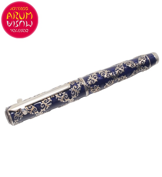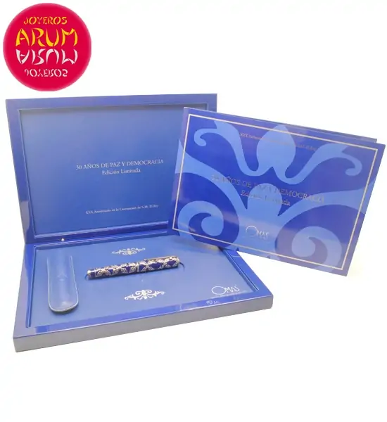 Descripción: Pluma de la prestigiosa firma Omas fabricada en el año 2005, está dedicada a los 30 años del reinado de S.M El Rey de España. Es una edición limitada a 300 piezas (015/300). Está elaborada en esmalte color azul, el color de la familia de Borbón, y decoraciones en filigrana elaborada en plata de ley (plata de 925 milésimas). En la parte superior del capuchón lleva una corona grabada en relieve y el capuchón tiene forma de cruz. El plumín está realizado en oro de 18 quilates y lleva grabado la corona y los años 1975-2005. La medida de la pluma es de 13,5 cm.