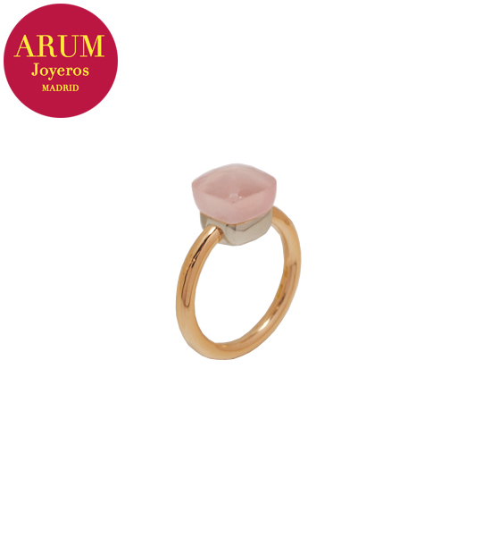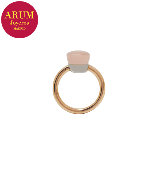 Product: Pomellato Ring Shop Reference: RAJ2143 Description: Pomellato ring made in 18K white and rose gold with pink adularia. Size:53 Condition: Like new, with Pomellato box.