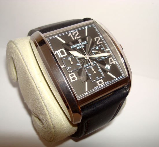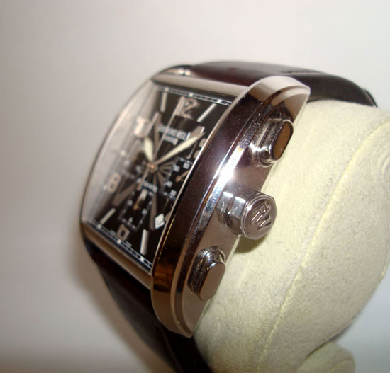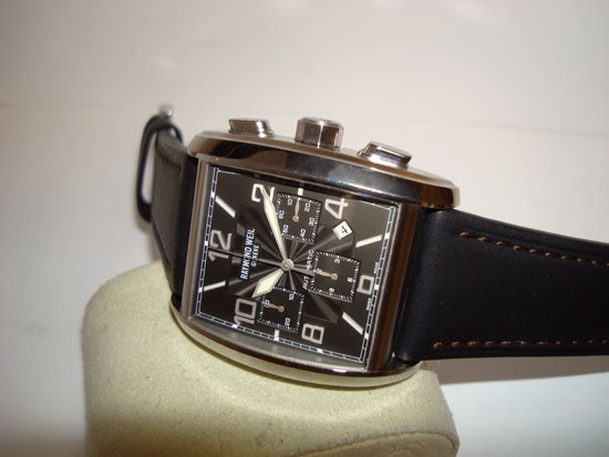 Description :steel, sapphire crystal, automatic movement, chronograph, 3 indicators on the dial, seconds, minutes, hours, luminescence in dial and handles, date, diameter 40 mm, waterproof 30 meters, transparent back cover, brown leather strap, buckle closure steel.