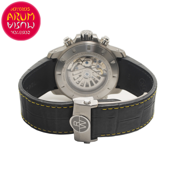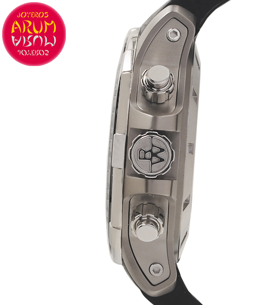 Other specifications :ceramic bezel, power reserve 46 hours, chronograph, date between four and five, small seconds at nine, screw crown, auxiliary push at ten for date, transparent caseback. Year 2016.