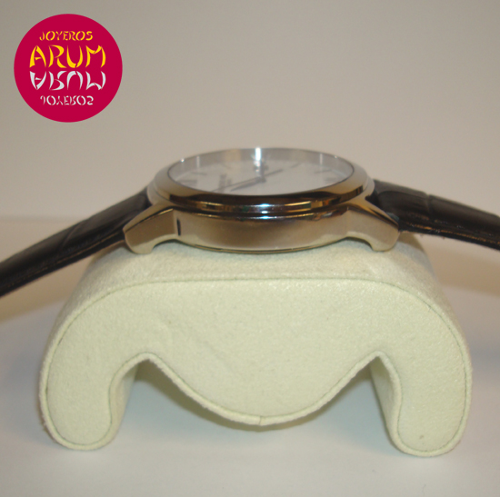 Description :steel, white dial, sapphire crystal, quartz movement, blue steel hands, center seconds, date at three, diameter 42 mm, waterproof 30 meters, black leather strap, steel buckle closure.